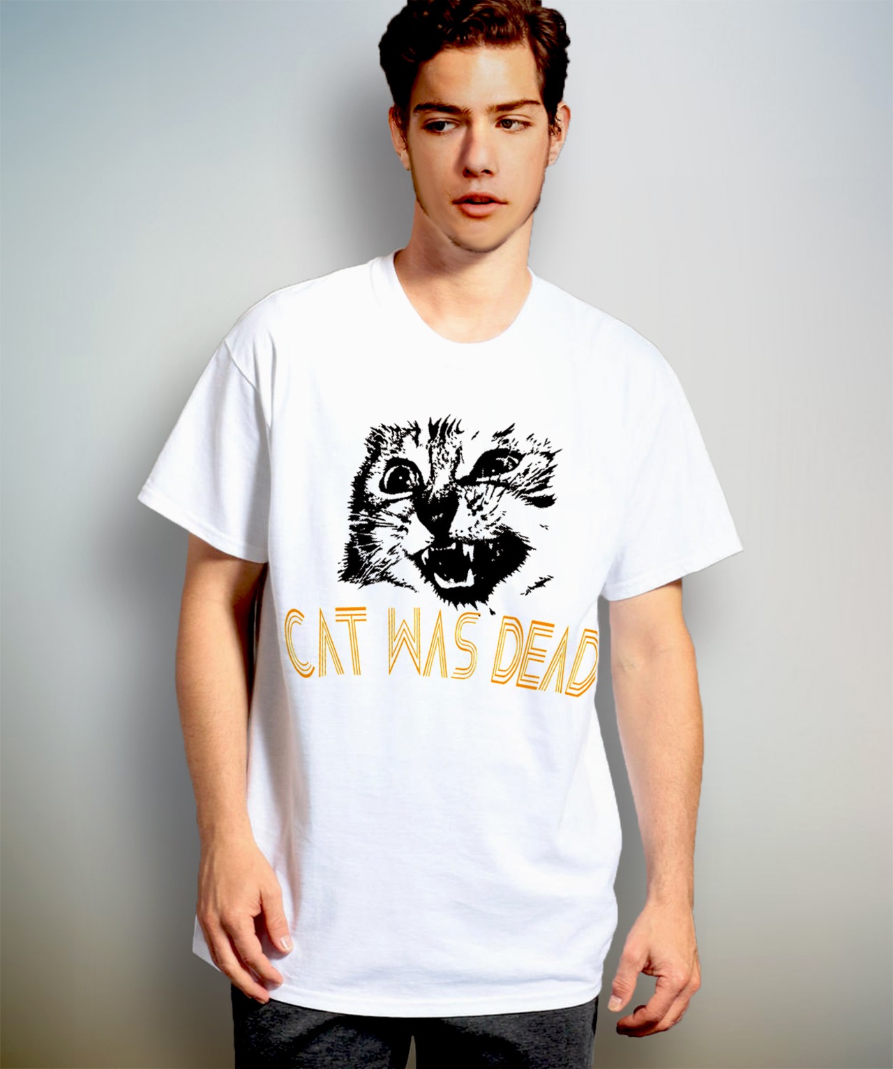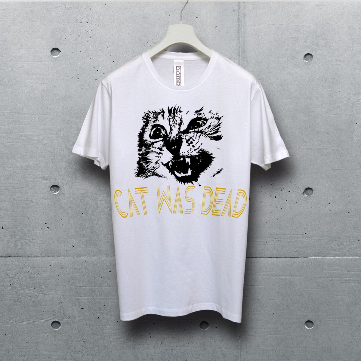 CAT WAS DEAD フォント1 アプリコット シルクスクリーンTシャツ