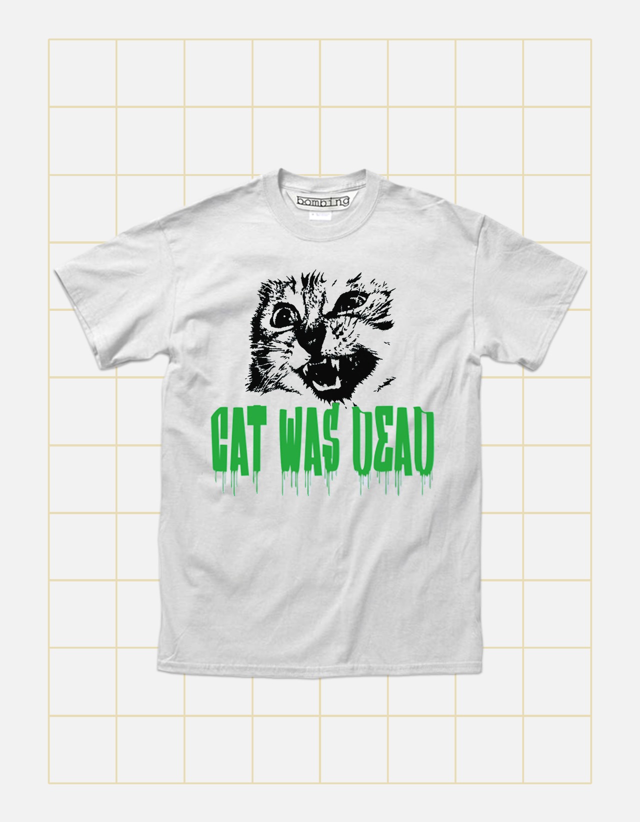 CAT WAS DEAD フォント2 グリーン シルクスクリーンTシャツ