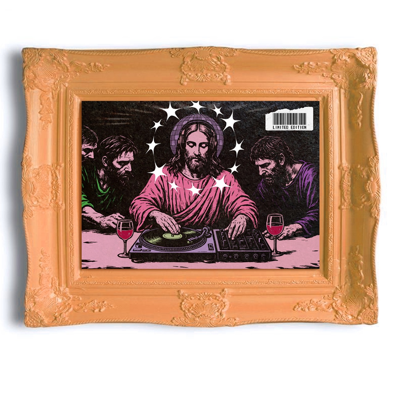 「最後の晩餐」をモチーフに、ヒップホップカルチャーとオルタナティブ系CDジャケットの世界観をミックスした一枚です。
