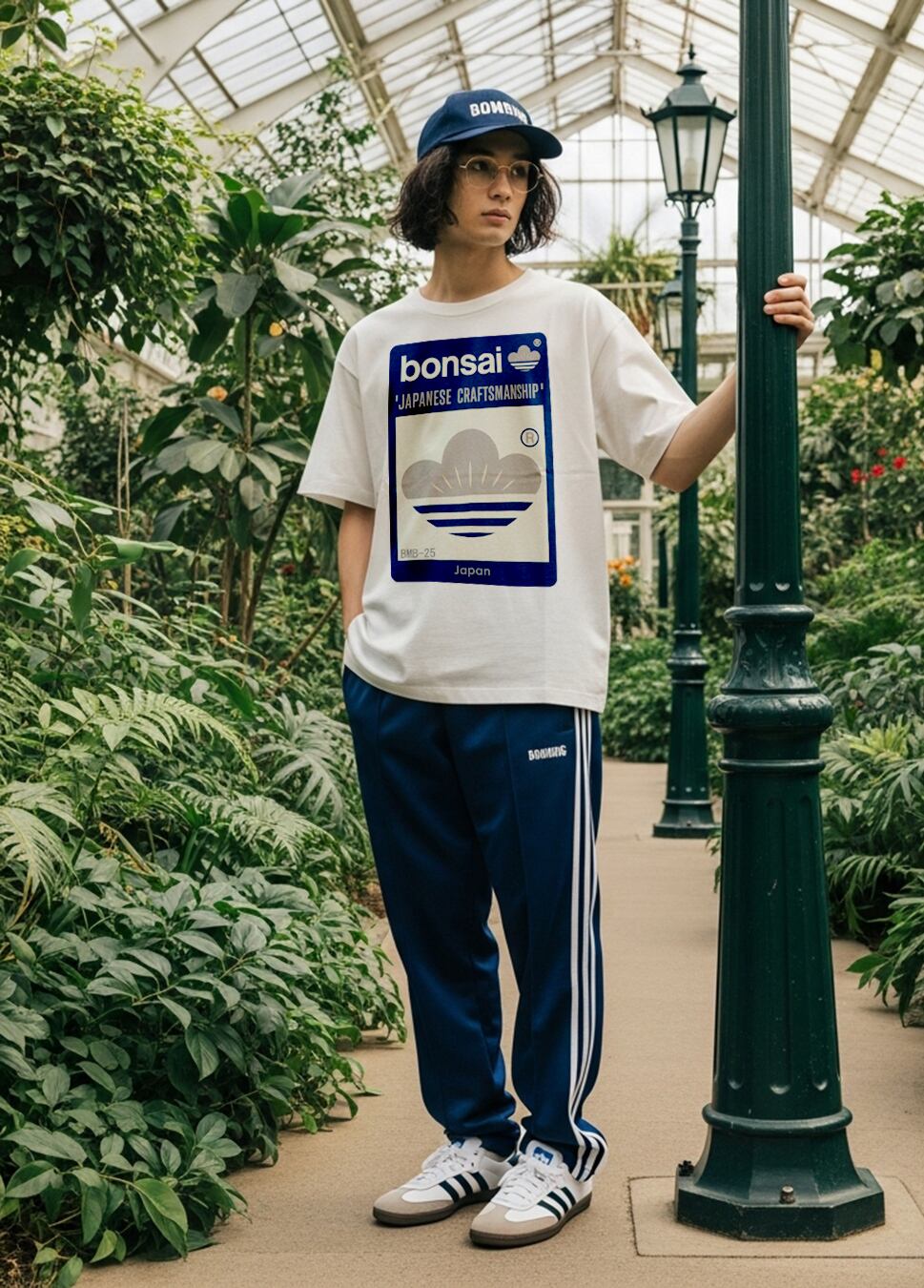 和モダン 盆栽ロゴ – ストリート デザイン  クラシックブルー 錆び ヘビーオンス ホワイトTシャツ 【 インクジェット 】