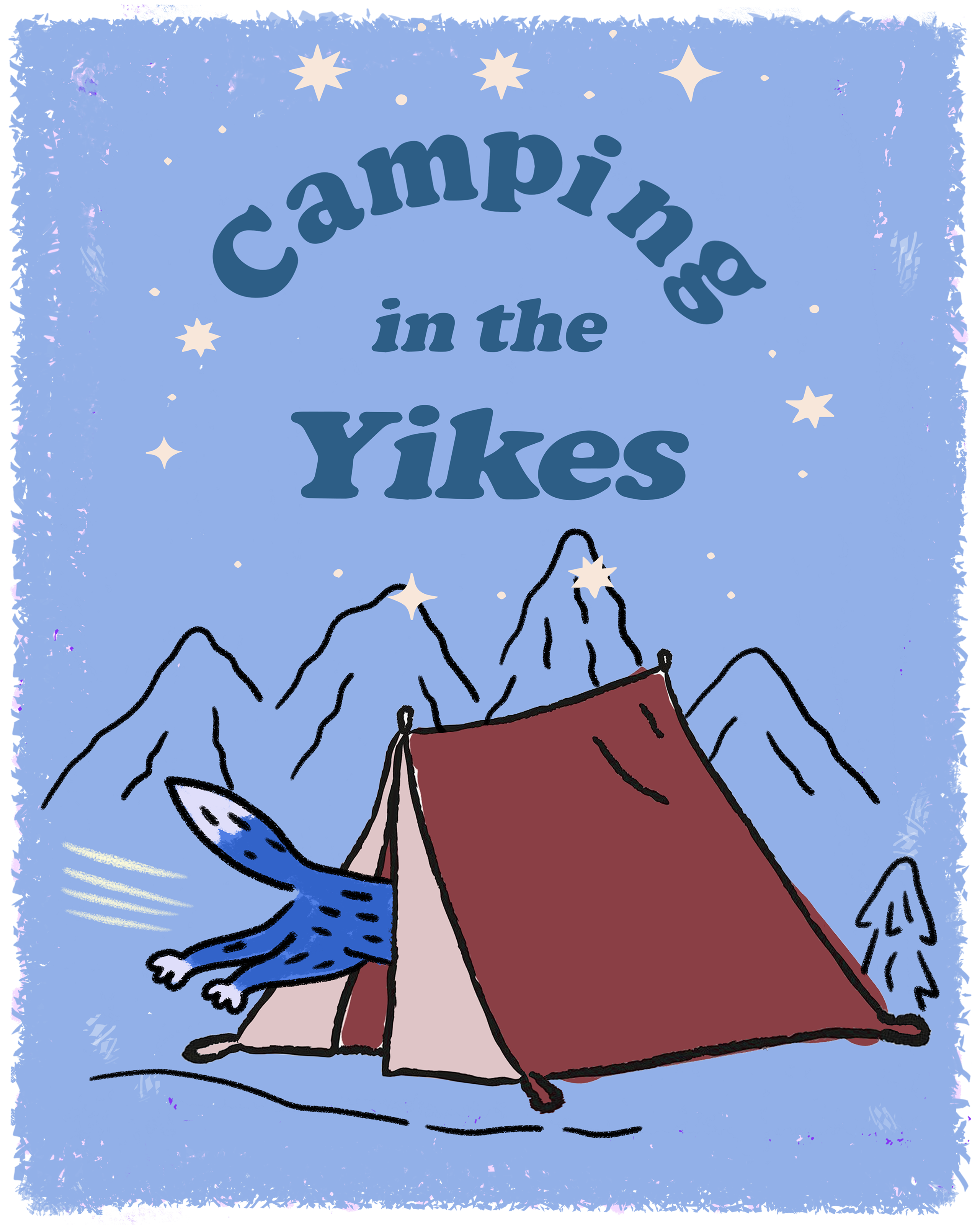 Camping in the YIKES ブルー ブラックTシャツ 【 インクジェット 】