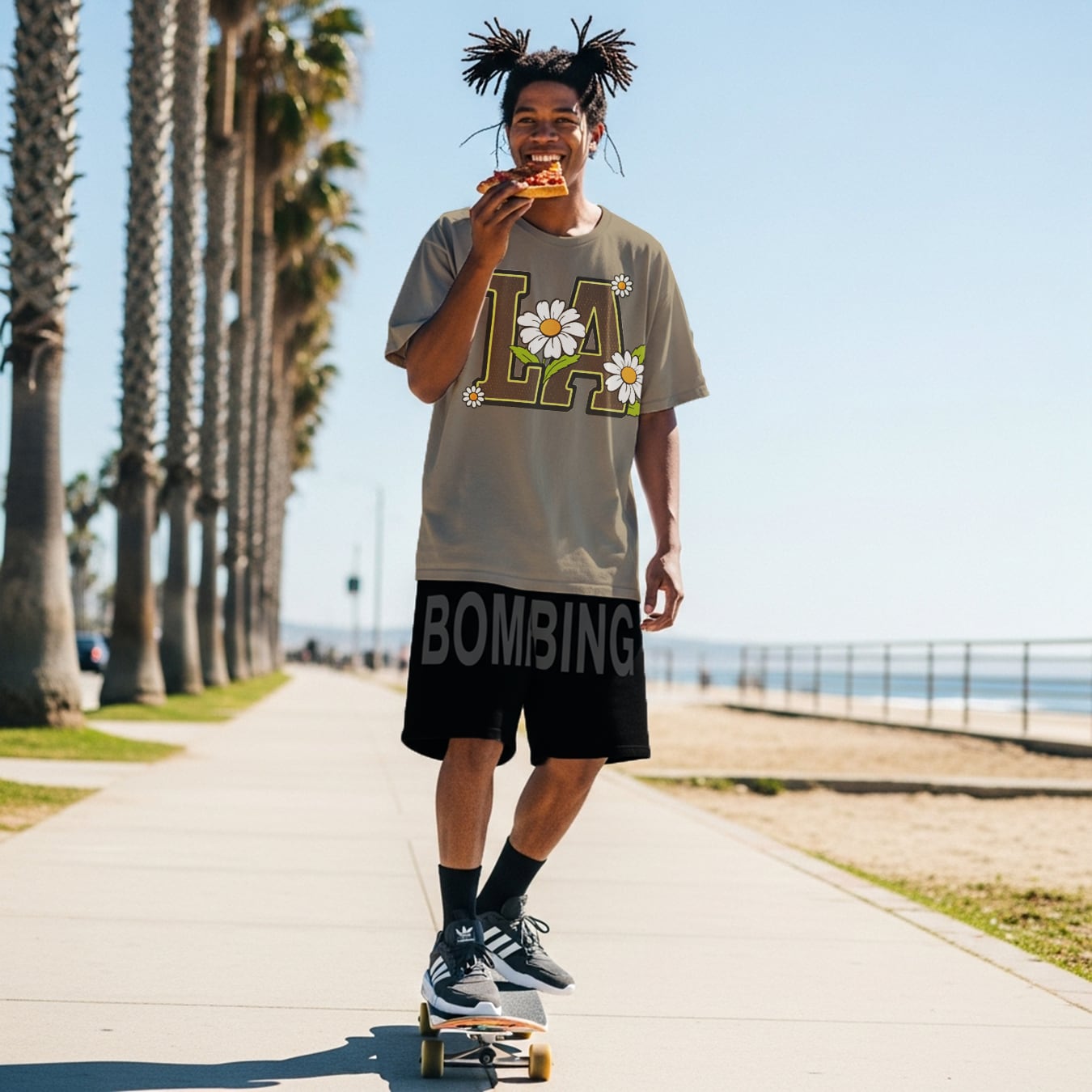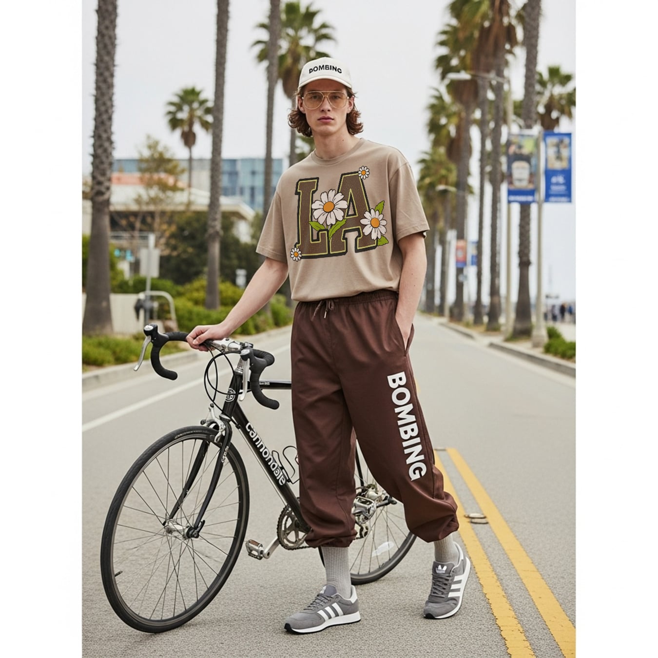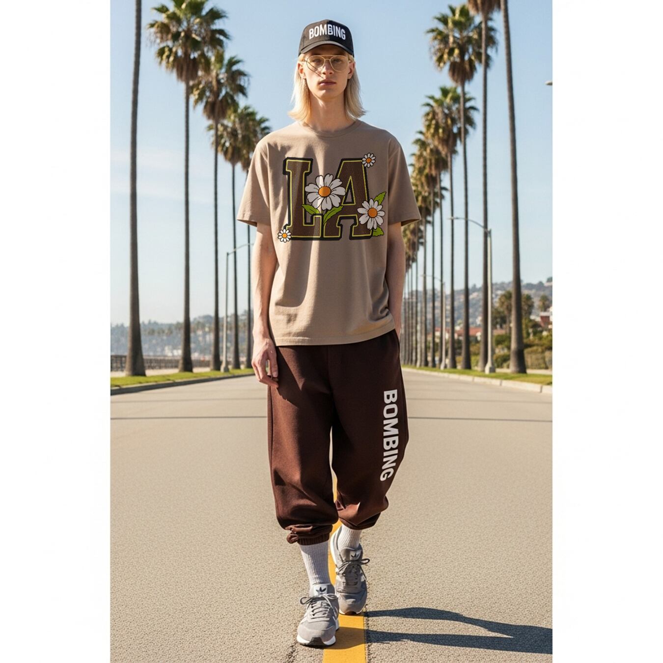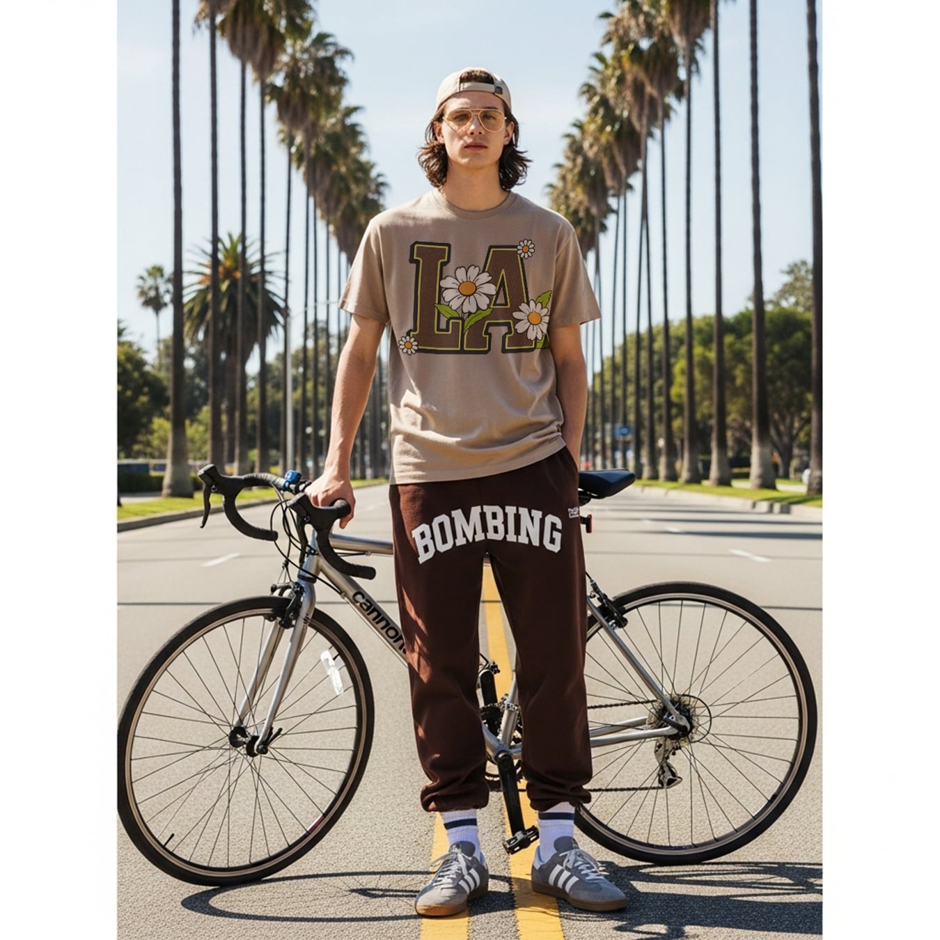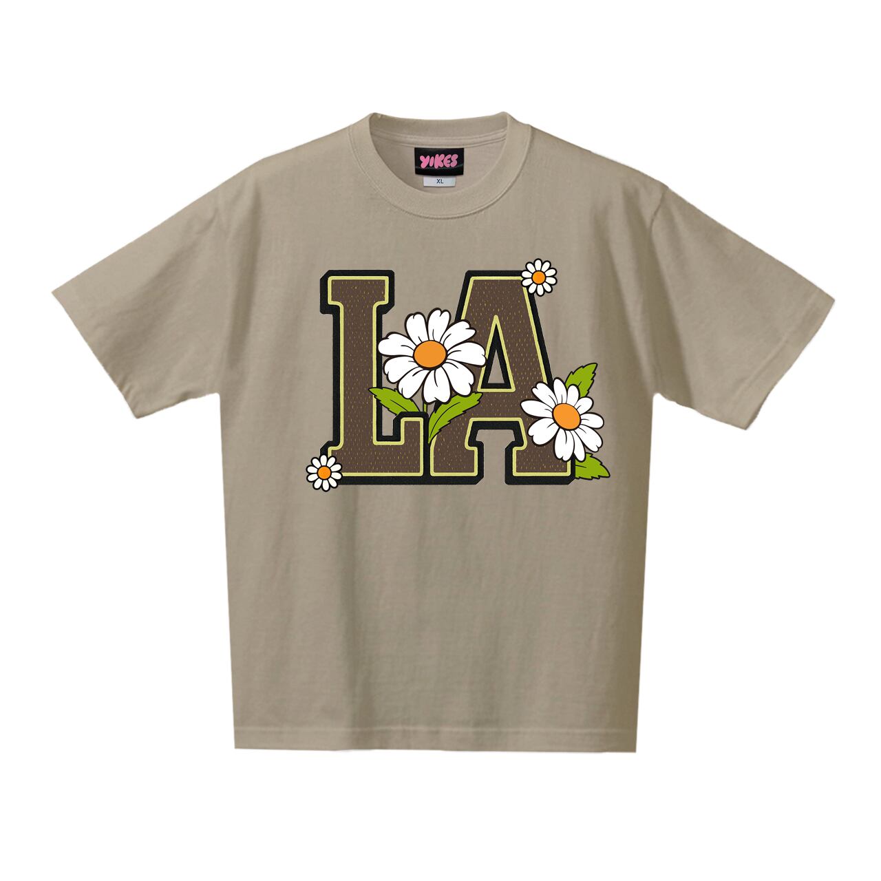 Bloom in LA ブラウン ロゴ サンドカーキTシャツ 【 インクジェット 】