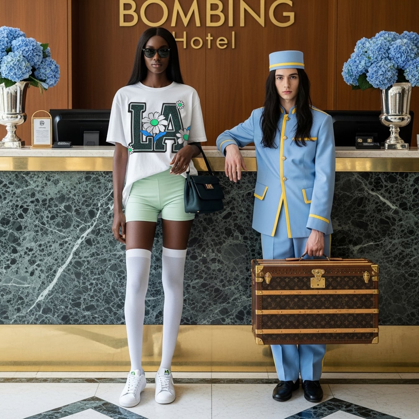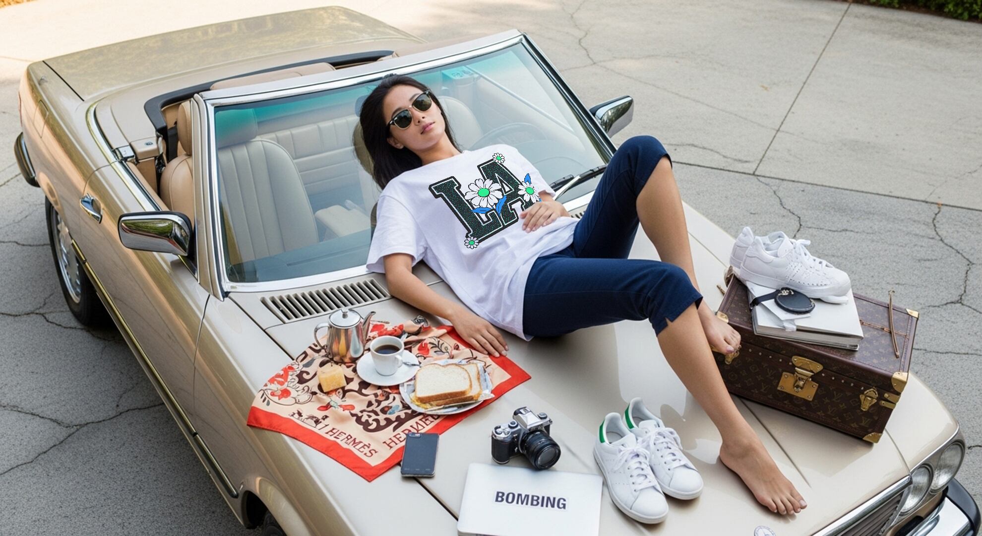 Bloom in LA ネイビー ロゴ ホワイトTシャツ 【 インクジェット 】