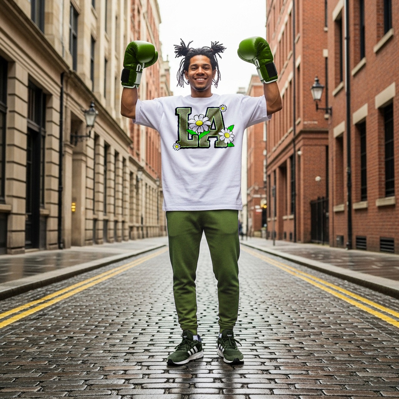 Bloom in LA グリーン ロゴ ホワイトTシャツ 【 インクジェット 】