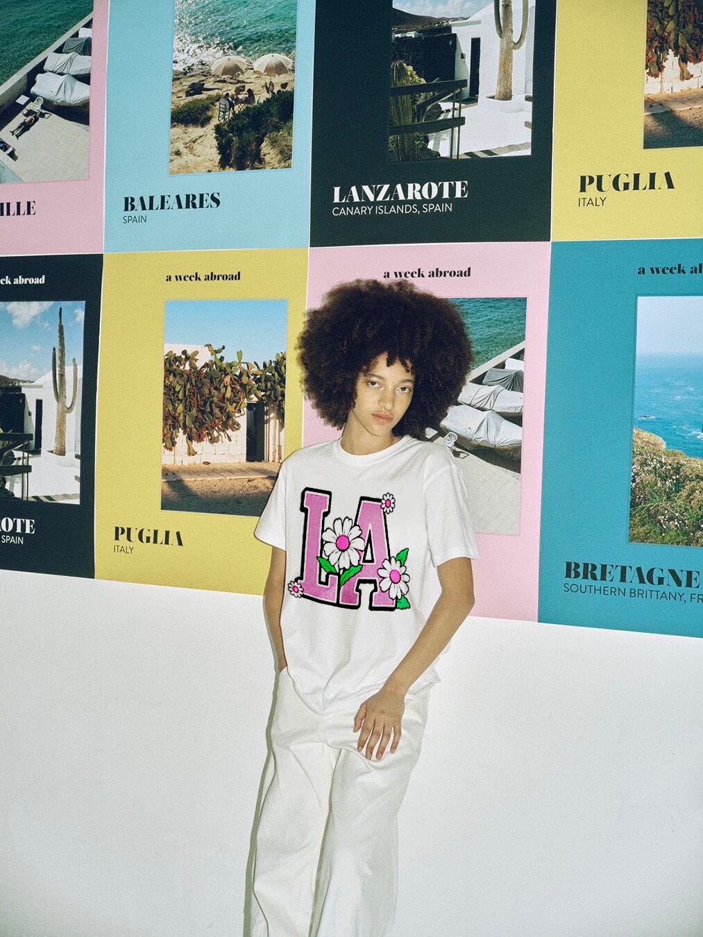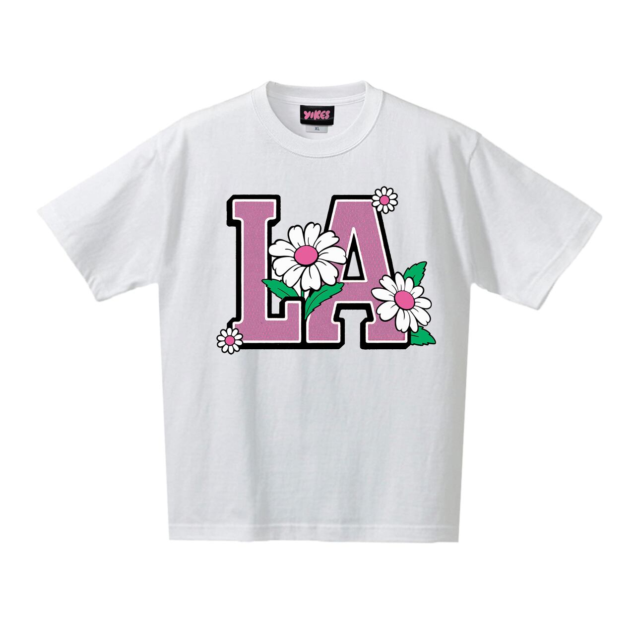Bloom in LA ピンク ロゴ ホワイトTシャツ 【 インクジェット 】