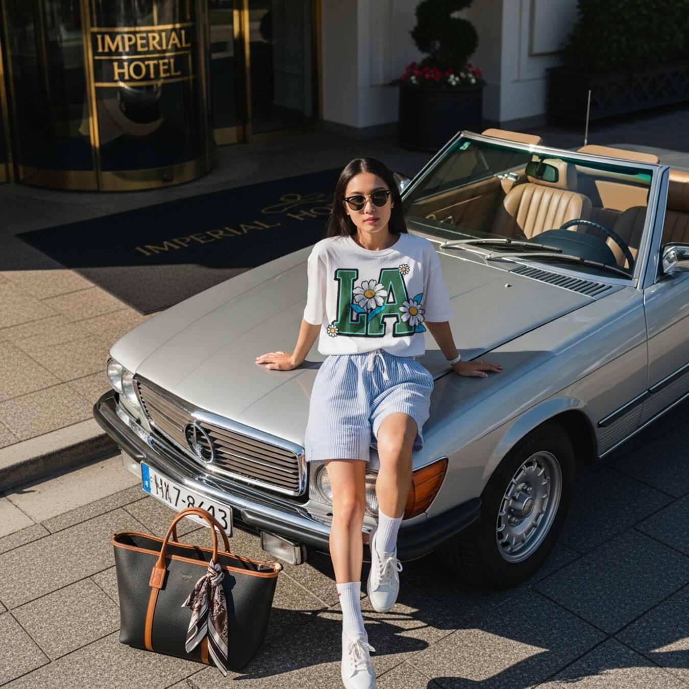 Bloom in LA ブルー ロゴ ホワイトTシャツ 【 インクジェット 】