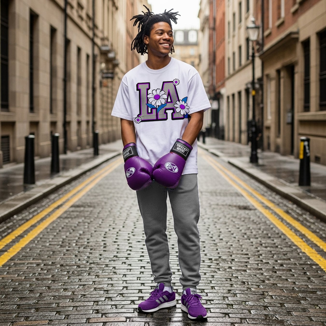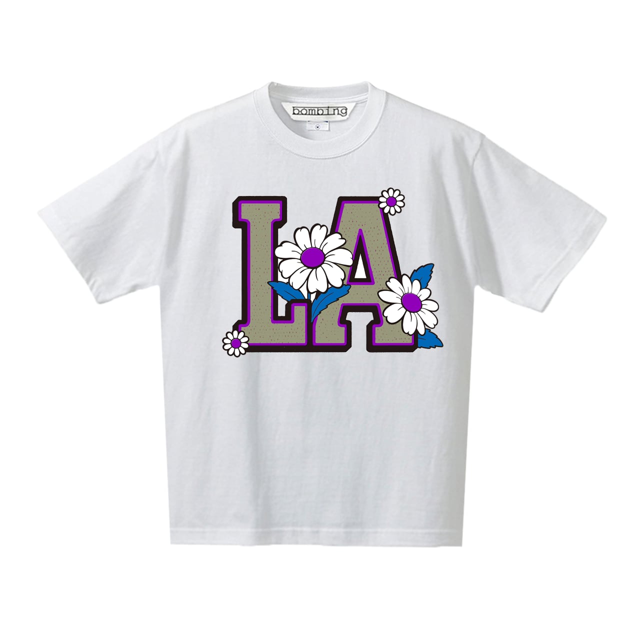 Bloom in LA グレー × パープル ロゴ ホワイトTシャツ 【 インクジェット 】