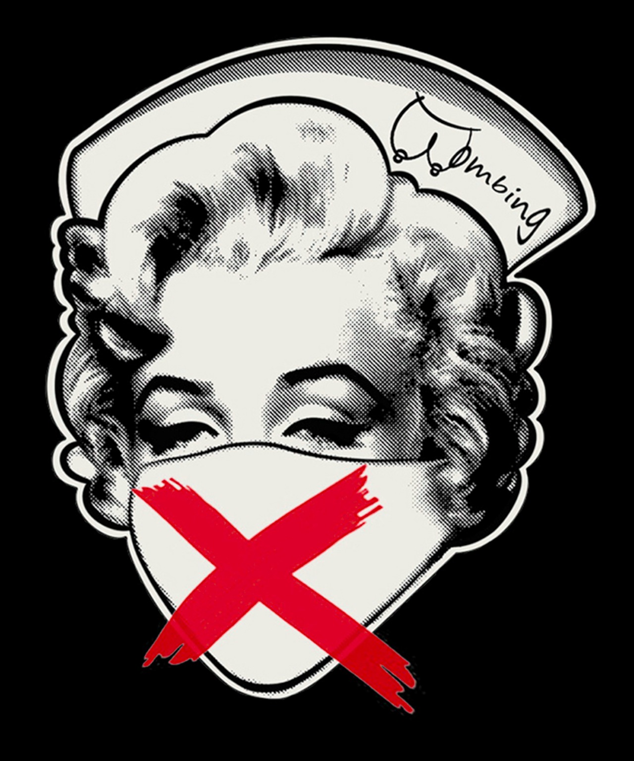 毛布代わりに抱いた女 レッド シルクスクリーンTシャツ ブラックボディ