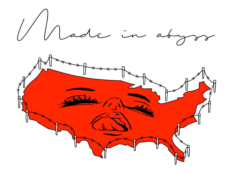 Made in abyss フォント 1 レッド シルクスクリーンTシャツ