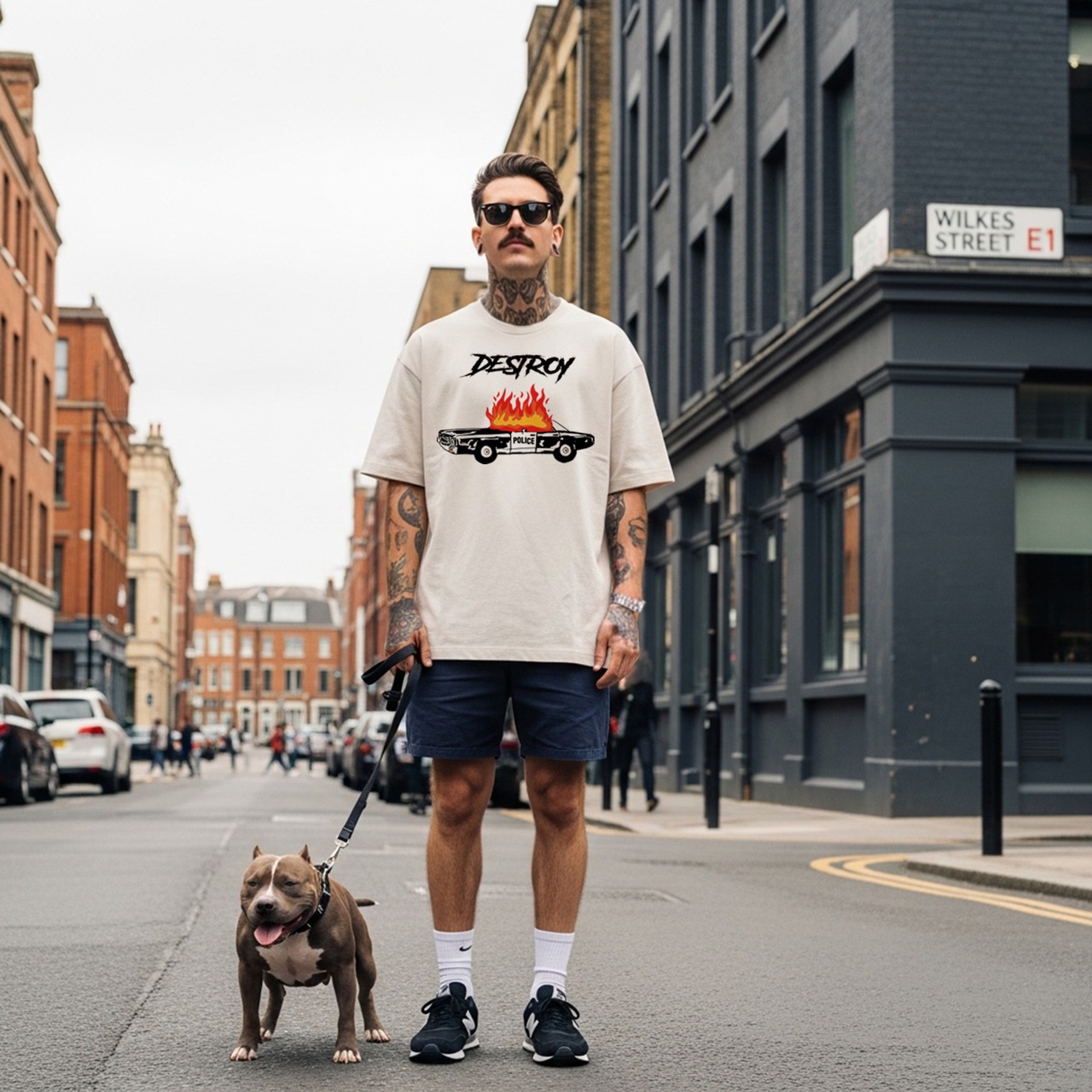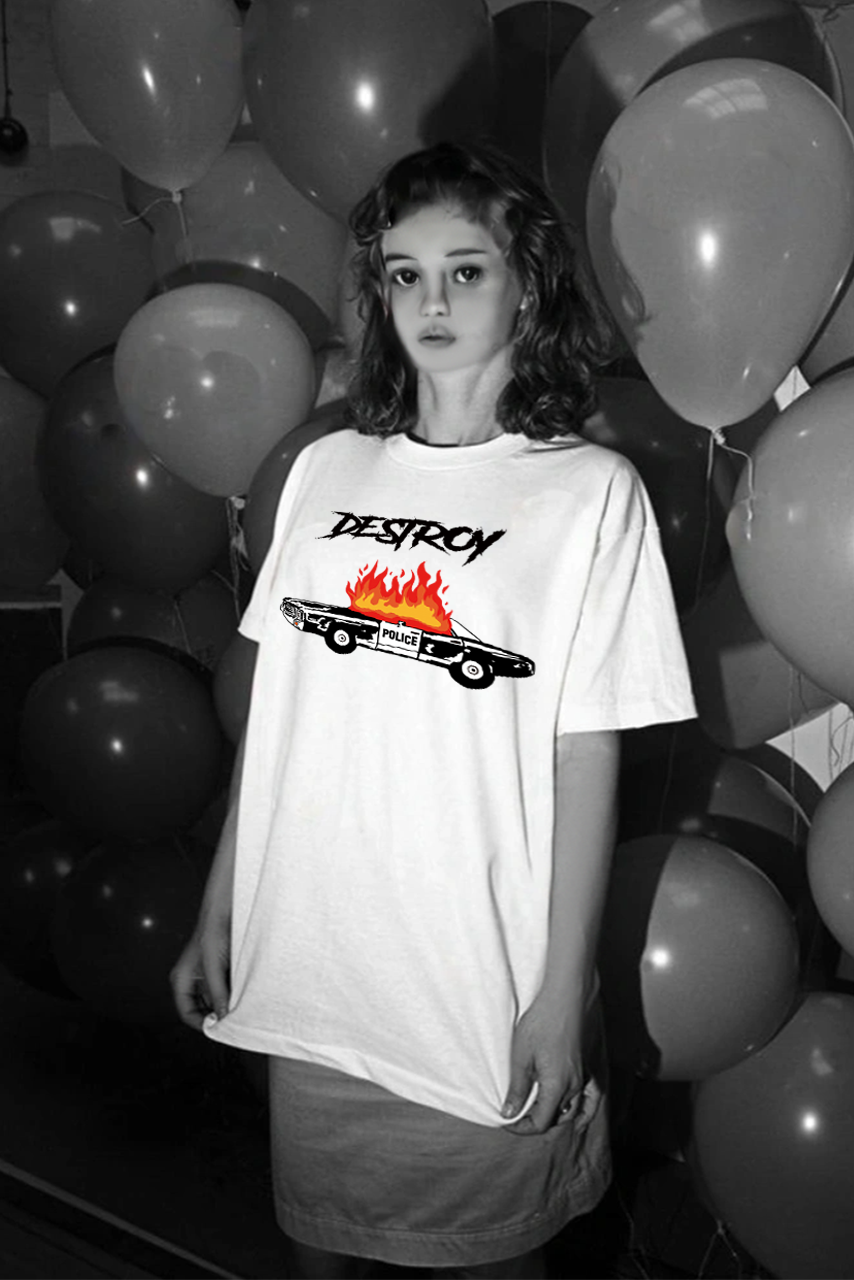 デストロ 911 タイプB フォント2 ホワイトTシャツ 【 インクジェット 】 | bombing