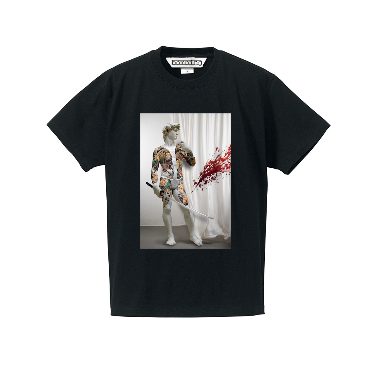 若気のイタリア RED 血しぶき 大 ブラックTシャツ 【 インクジェット 】 | bombing