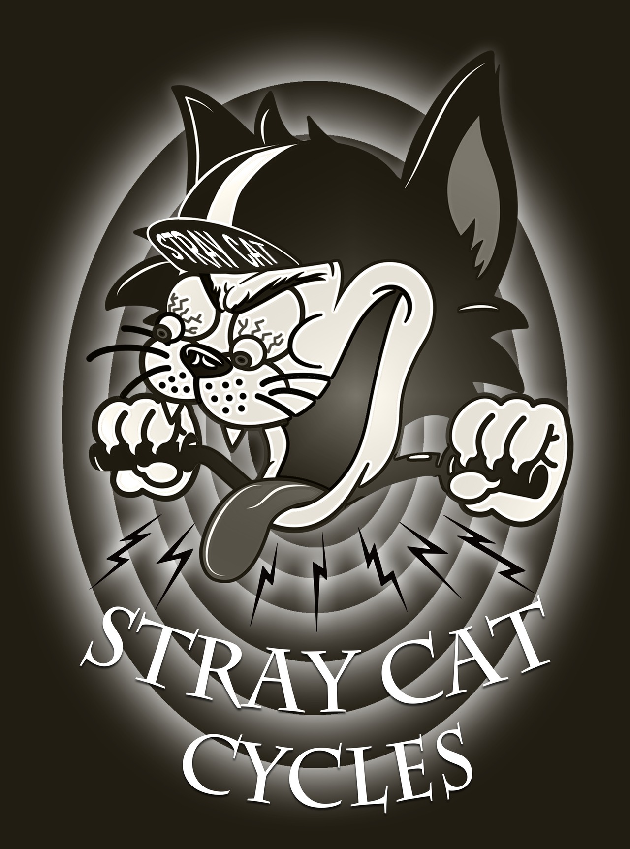STRAY CAT CYCLESのオリジナルキャラクターがプリントされています。